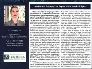 Екипът на IP Consulitng е включен като водещ в сферата на Индустриалната собственост – в секция ЕВРОПА – България: