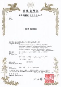 По-горе може да видите сертификат на сушено регистрирана търговска марка в Япония.